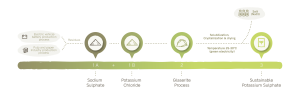 Quá trình GreenSwitch® Potassium, dựa trên công nghệ CINIS, dựa trên việc sử dụng chất thải từ các ngành công nghiệp khác, bao gồm tro từ nhà máy bột giấy và natri sunfat (Na2SO4) từ quá trình sản xuất pin xe điện. Những ngành công nghiệp này đang tìm kiếm những cách bền vững để xử lý các sản phẩm phụ của họ, và với nhu cầu về xe điện ngày càng tăng trong những năm tới, việc tái chế chất thải của họ trở thành một vấn đề ngày càng quan trọng. Phương pháp sử dụng chất thải làm nguyên liệu trong quá trình sản xuất kali sunfat là duy nhất trên thế giới và được bảo vệ bởi một bằng sáng chế.